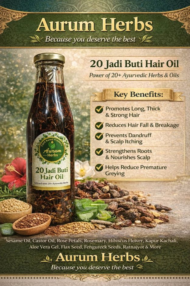 Nourish your hair naturally with Aurum Herbs 20 Jadi Buti Hair Oil — because you deserve the best.