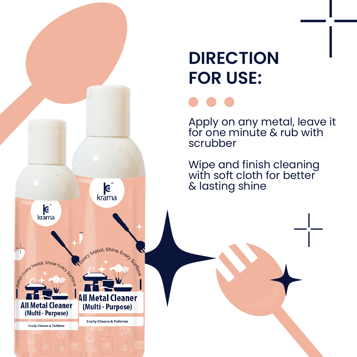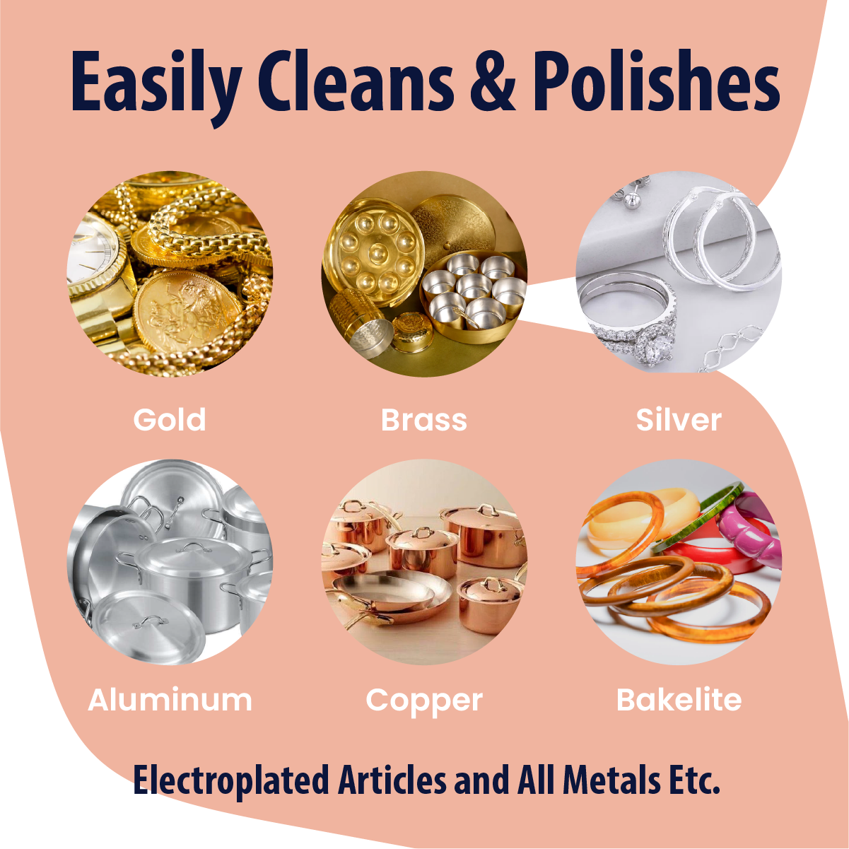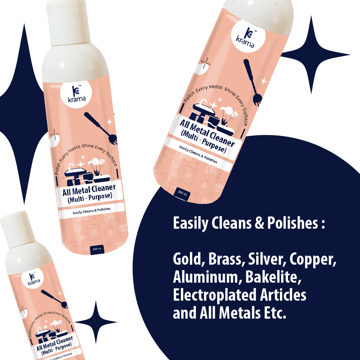 - VERSATILE USE: This is a all-purpose bronze, brass, copper cleaner liquid which effortlessly removes stains, tarnish, oxidization, dirt, grease, and grime from silver, gold, nickel, stainless steel, aluminum, bakelite, electroplated articles and offers a new looking shiny metals; Ideal for gold-silverware jewellery/ jewelry, antiques, decorative pieces, art utensil/ bartan, metal sink, cookware and is a best (faucets) steel tap cleaner and shiner & brass cleaning liquid for pooja items.