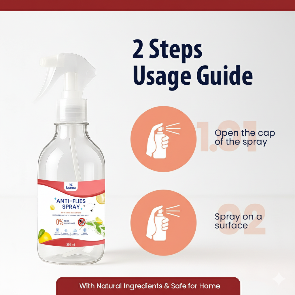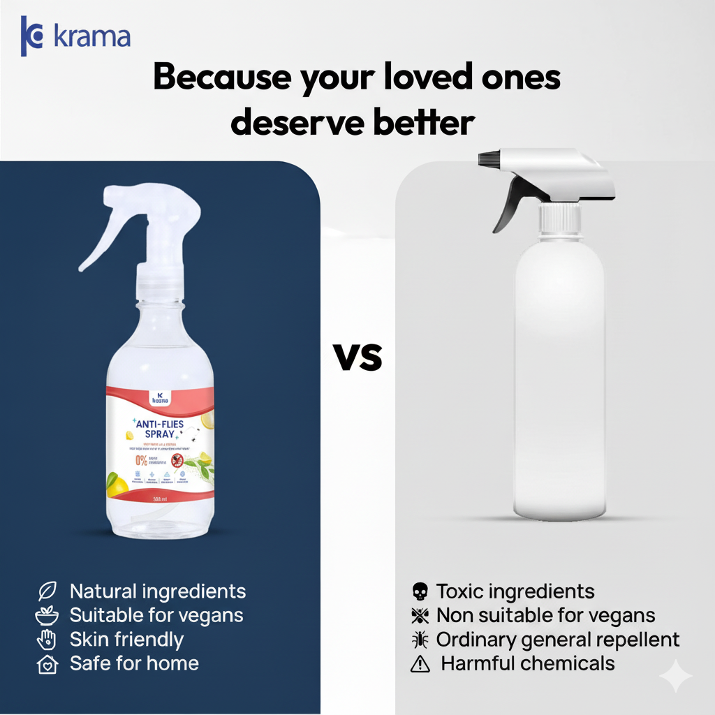 - INSTANT CRUELTY-FREE RESULT – No more dependency on chemical based insect killer spray which instantly kills flies, when you’ve Krama’s organic insect repellent spray specialized for flies which is made of powerful natural substances that keeps away all types of flies out of your home immediately for hours without killing them (a vegan solution); safe, gentle yet effective for keeping fly free home.